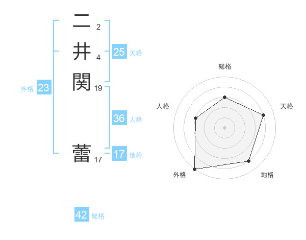 二井関 蕾さんの外格は23画の5点!