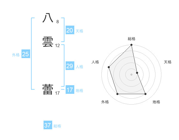 八雲 蕾さんの総格は37画の5点!