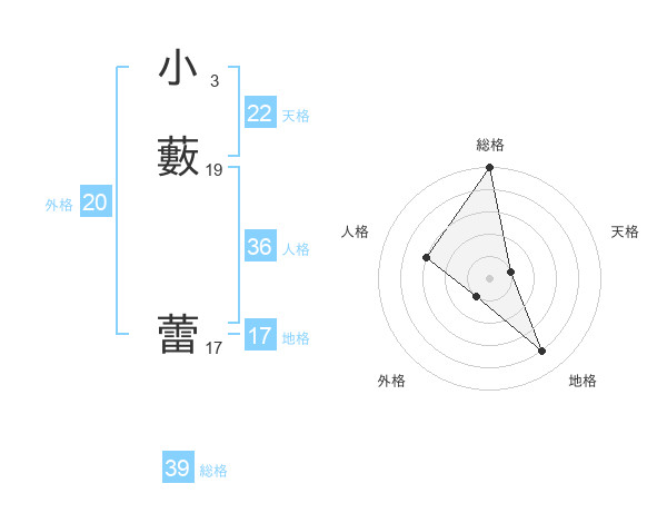 小藪 蕾さんの外格は20画の1点!