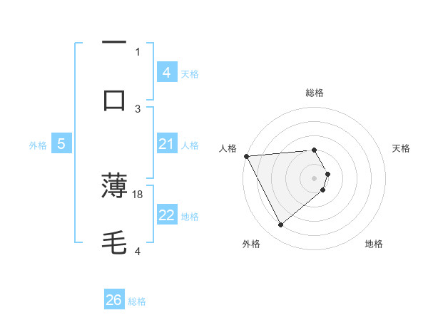 一口 薄毛さんを姓名の画数から五運を鑑定