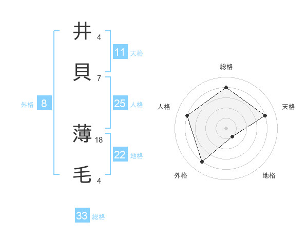 井貝 薄毛さんを姓名の画数から五運を鑑定