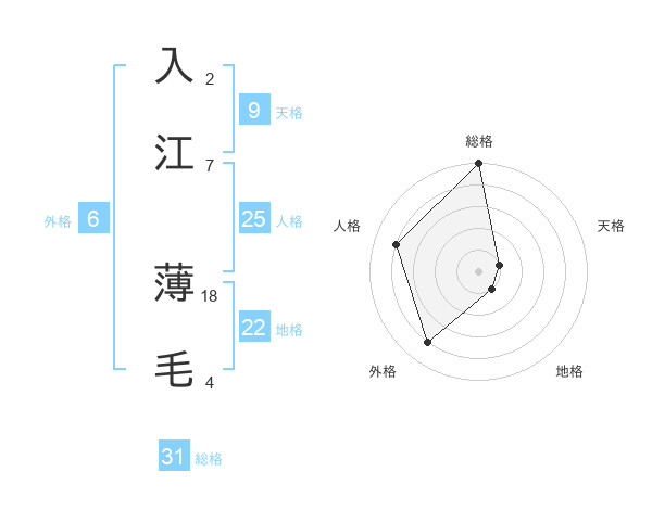 入江 薄毛さんを姓名の画数から五運を鑑定