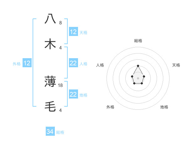 八木 薄毛さんの地格は22画の1点!