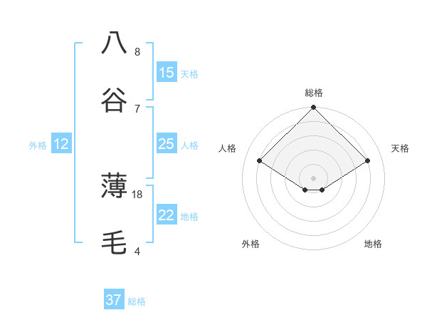 八谷 薄毛さんの総格は37画の5点!