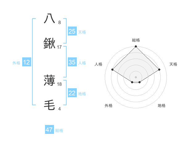 八鍬 薄毛さんを姓名の画数から五運を鑑定