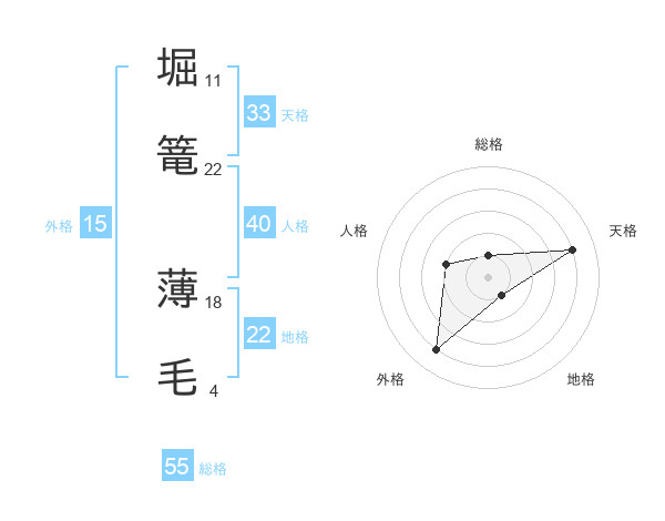 堀篭 薄毛さんを姓名の画数から五運を鑑定