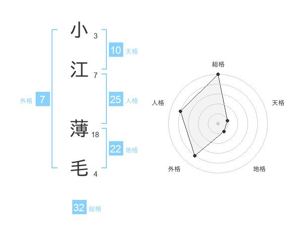 小江 薄毛さんを姓名の画数から五運を鑑定