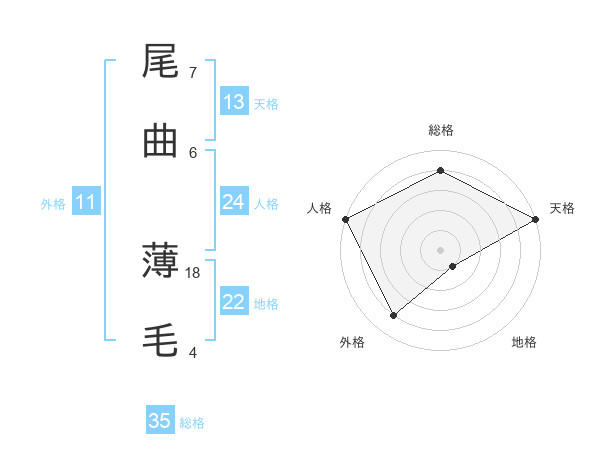 尾曲 薄毛さんの総格は35画の4点!