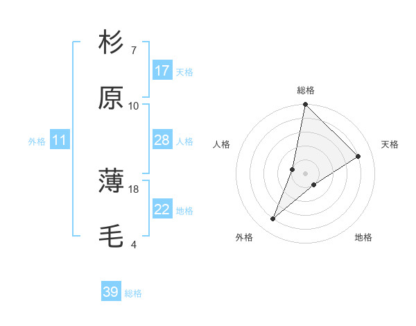 杉原 薄毛さんの総格は39画の5点!