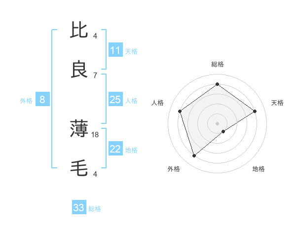 比良 薄毛さんの総格は33画の4点!