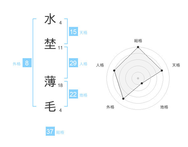 水埜 薄毛さんの総格は37画の5点!