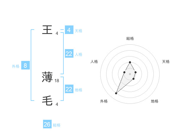 王 薄毛さんの総格は26画の2点!