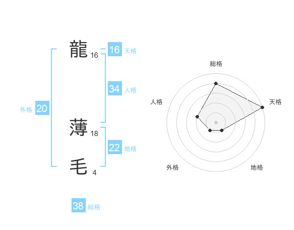 龍 薄毛さんを姓名の画数から五運を鑑定