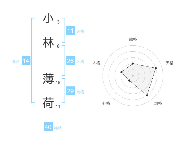 小林 薄荷さんの天格は11画の4点!