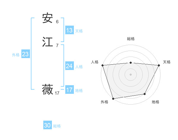 安江 薇さんの総格は30画の2点!