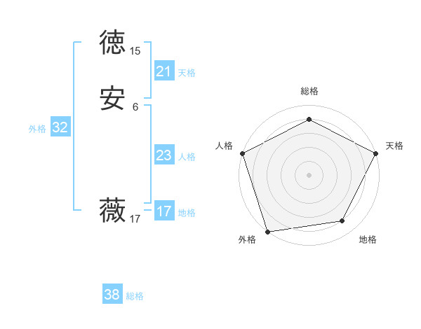 徳安 薇さんの総格は38画の4点!