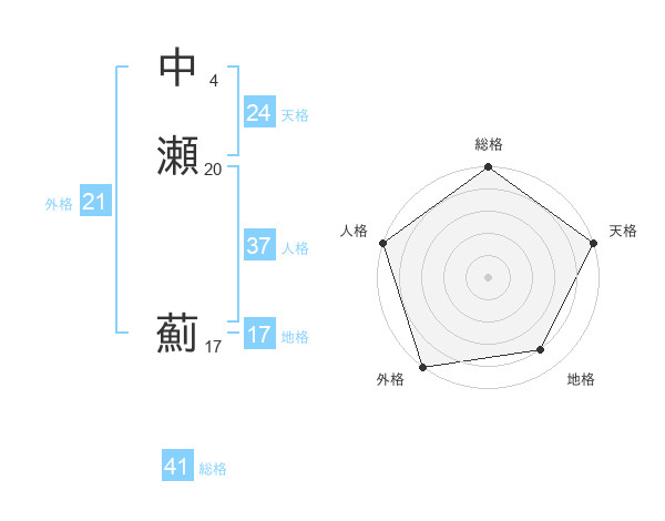 中瀬 薊さんの総格は41画の5点!
