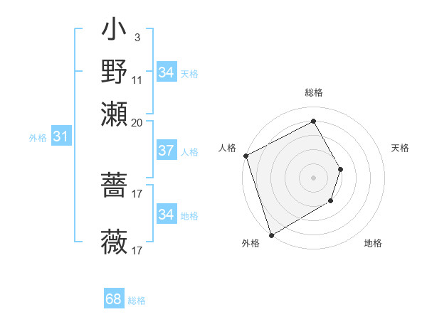 小野瀬 薔薇さんを姓名の画数から五運を鑑定