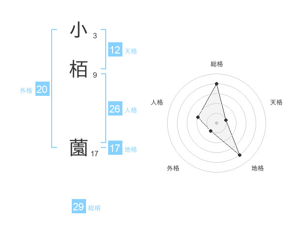 小栢 薗さんの総格は29画の4点!