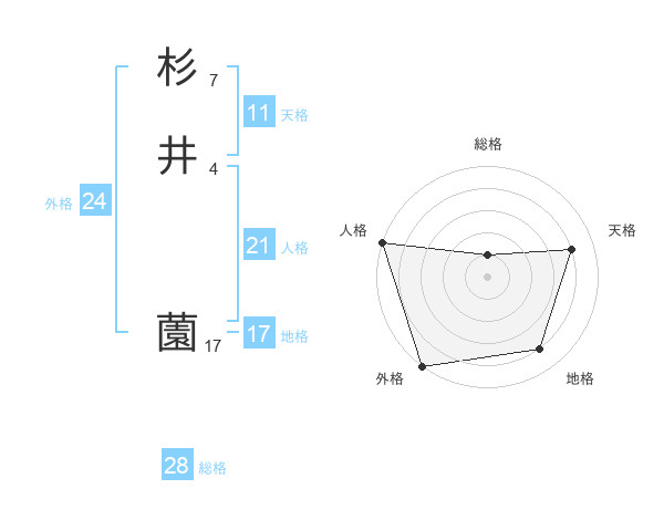 杉井 薗さんの総格は28画の1点!