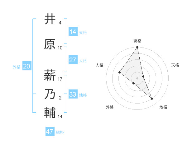 井原 薪乃輔さんの総格は47画の5点