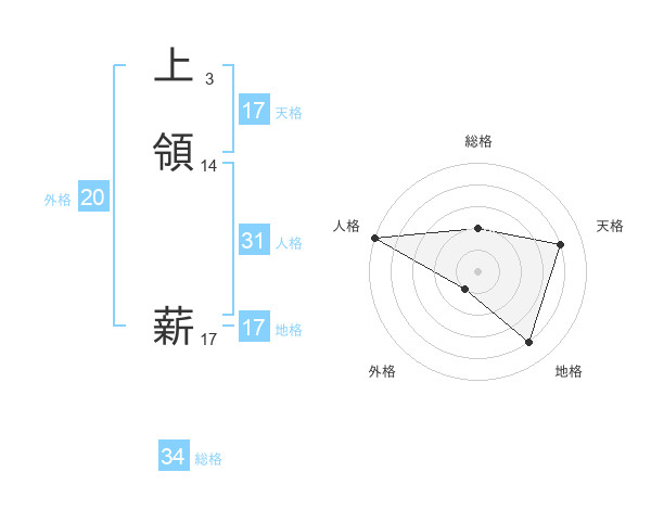 上領 薪さんの天格は17画の4点!