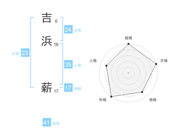 吉浜 薪さんを姓名の画数から五運を鑑定