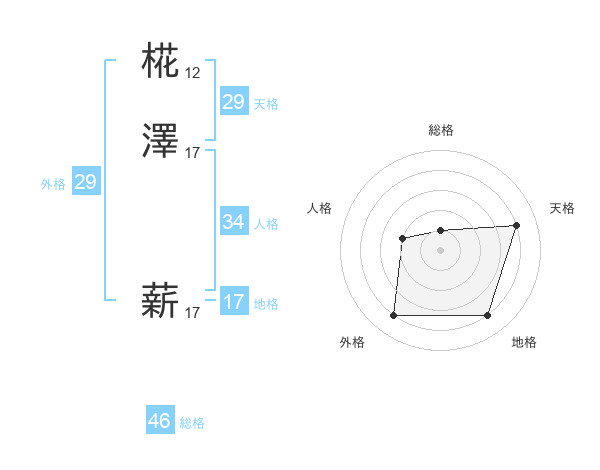 椛澤 薪さんの天格は29画の4点!