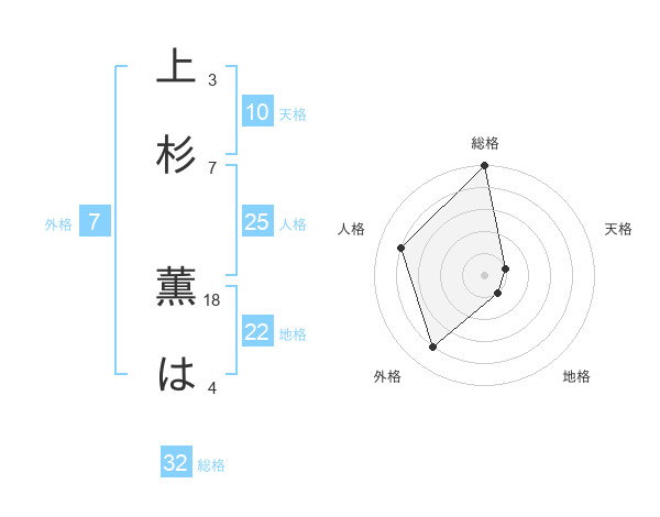 上杉 薫はさんを姓名の画数から五運を鑑定