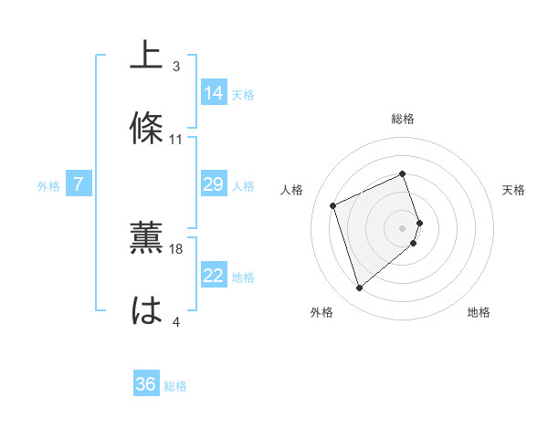 上條 薫はさんの総格は36画の3点!