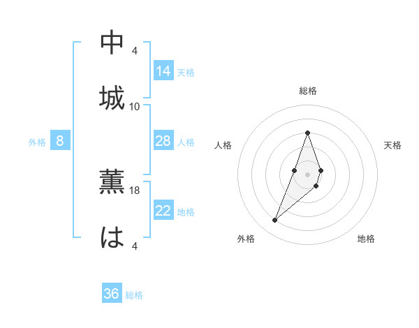 中城 薫はさんの外格は8画の4点!