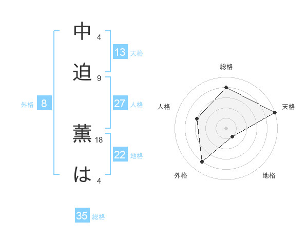 中迫 薫はさんの総格は35画の4点!