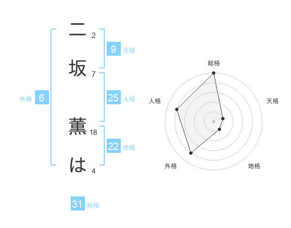 二坂 薫はさんの総格は31画の5点!