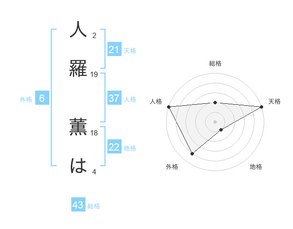 人羅 薫はさんを姓名の画数から五運を鑑定