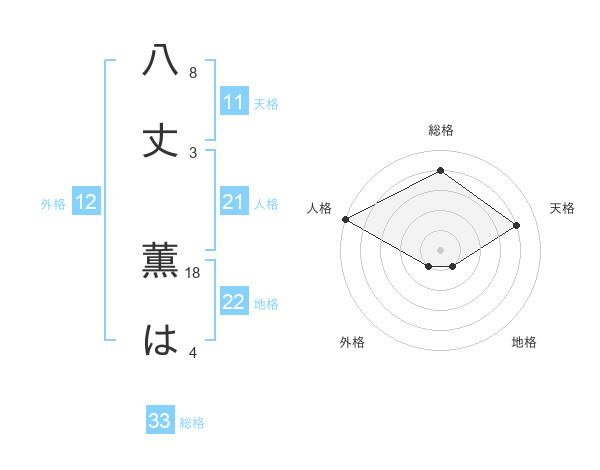 八丈 薫はさんの地格は22画の1点!