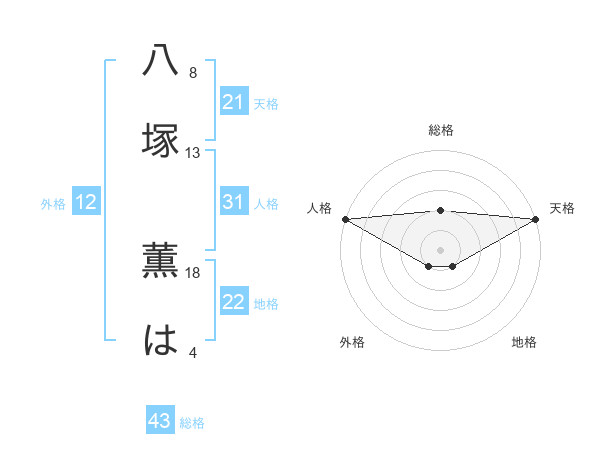八塚 薫はさんを姓名の画数から五運を鑑定