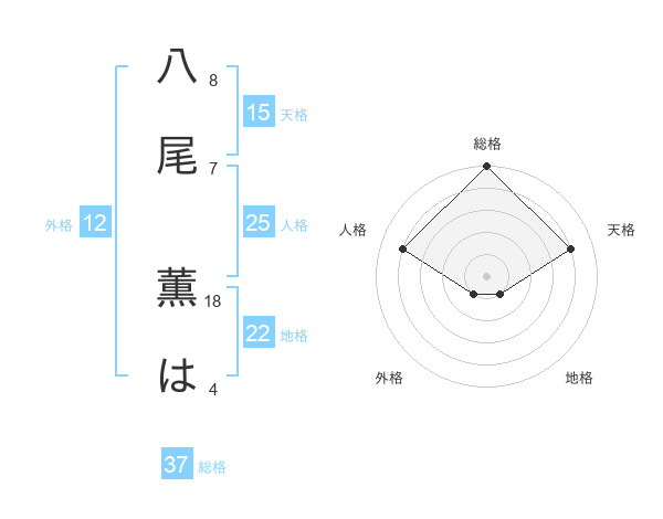 八尾 薫はさんの総格は37画の5点!