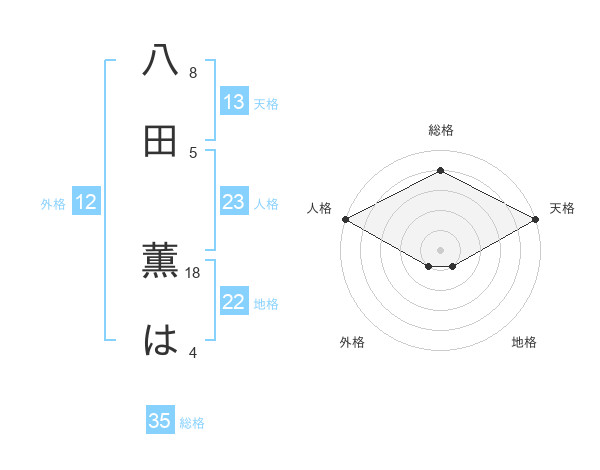 八田 薫はさんの天格は13画の5点!