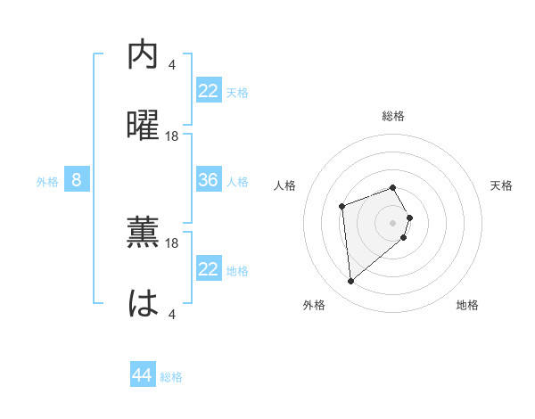 内曜 薫はさんを姓名の画数から五運を鑑定