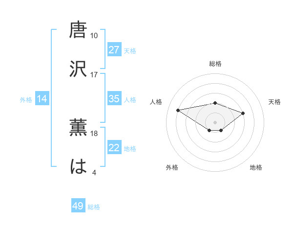 唐沢 薫はさんを姓名の画数から五運を鑑定