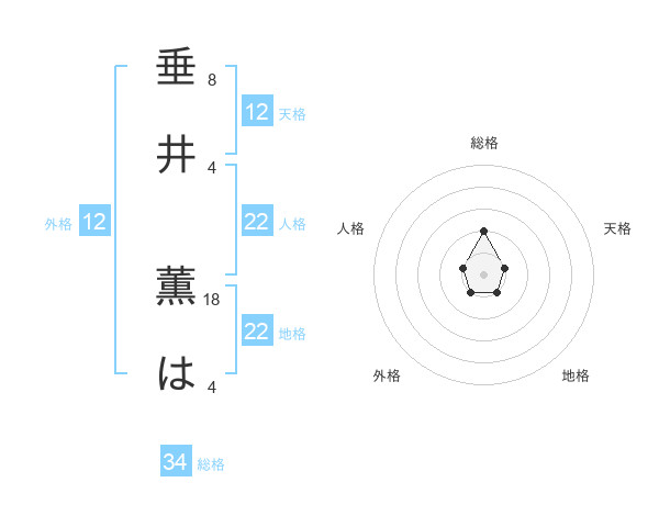 垂井 薫はさんの外格は12画の1点!