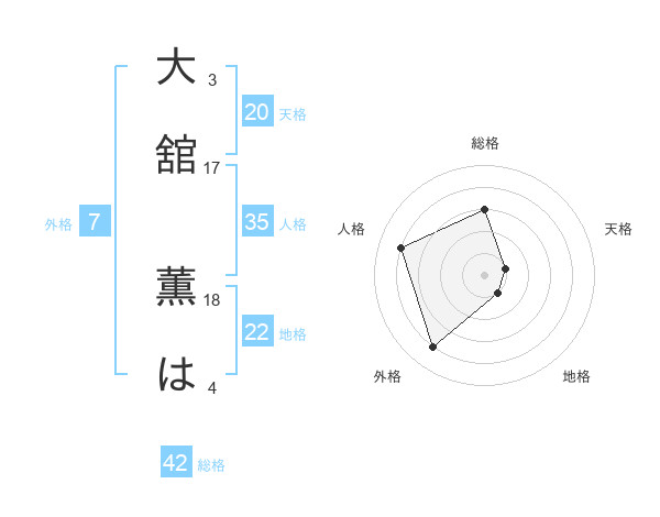 大舘 薫はさんの総格は42画の3点!