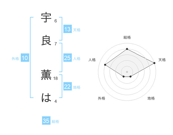 宇良 薫はさんの天格は13画の5点!