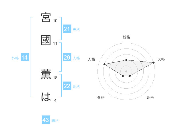宮國 薫はさんを姓名の画数から五運を鑑定