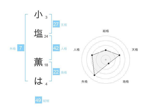 小塩 薫はさんの総格は49画の2点!