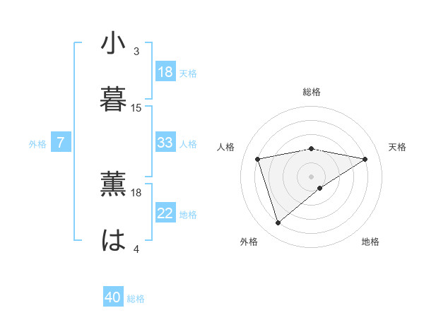 小暮 薫はさんの総格は40画の2点