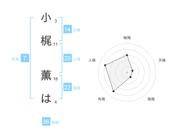 小梶 薫はさんの天格は14画の1点!
