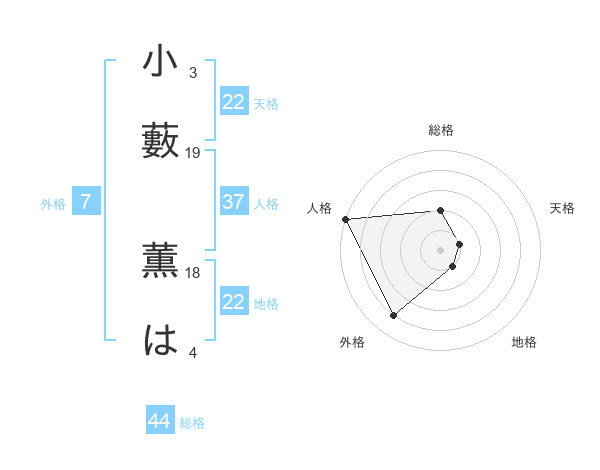 小藪 薫はさんの地格は22画の1点!