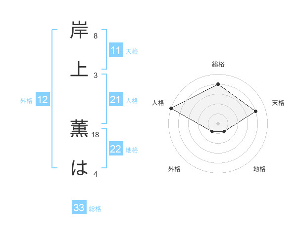岸上 薫はさんを姓名の画数から五運を鑑定