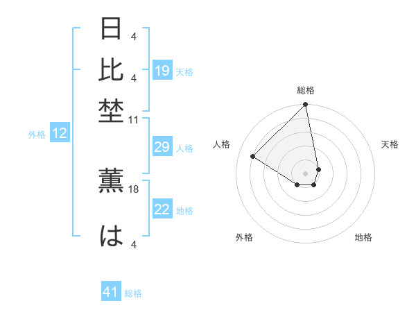 日比埜 薫はさんを姓名の画数から五運を鑑定